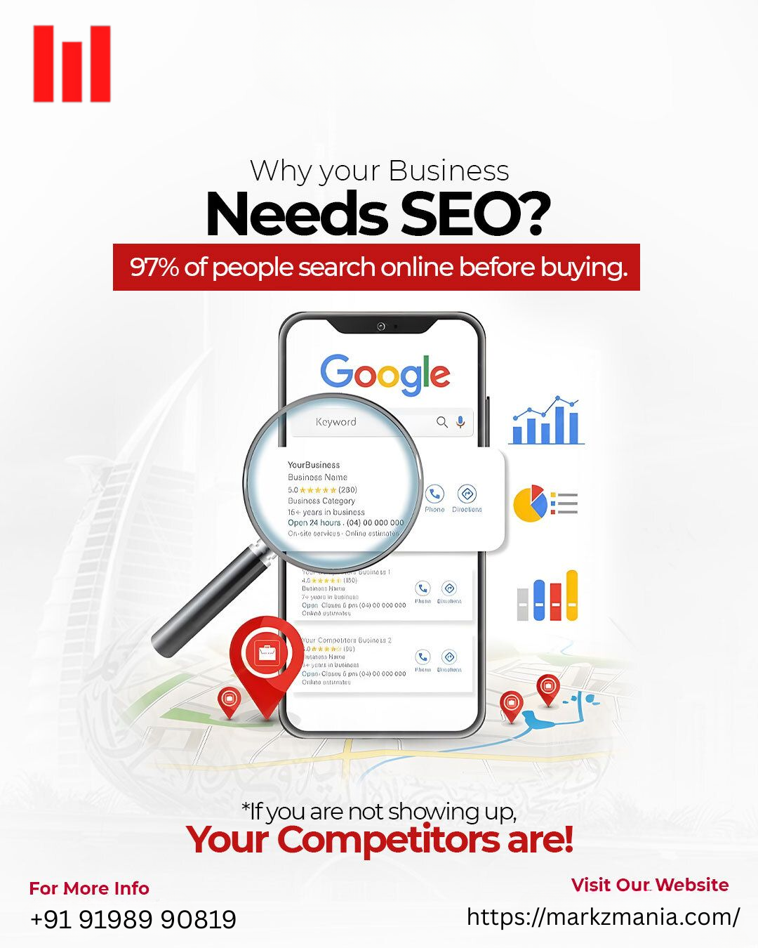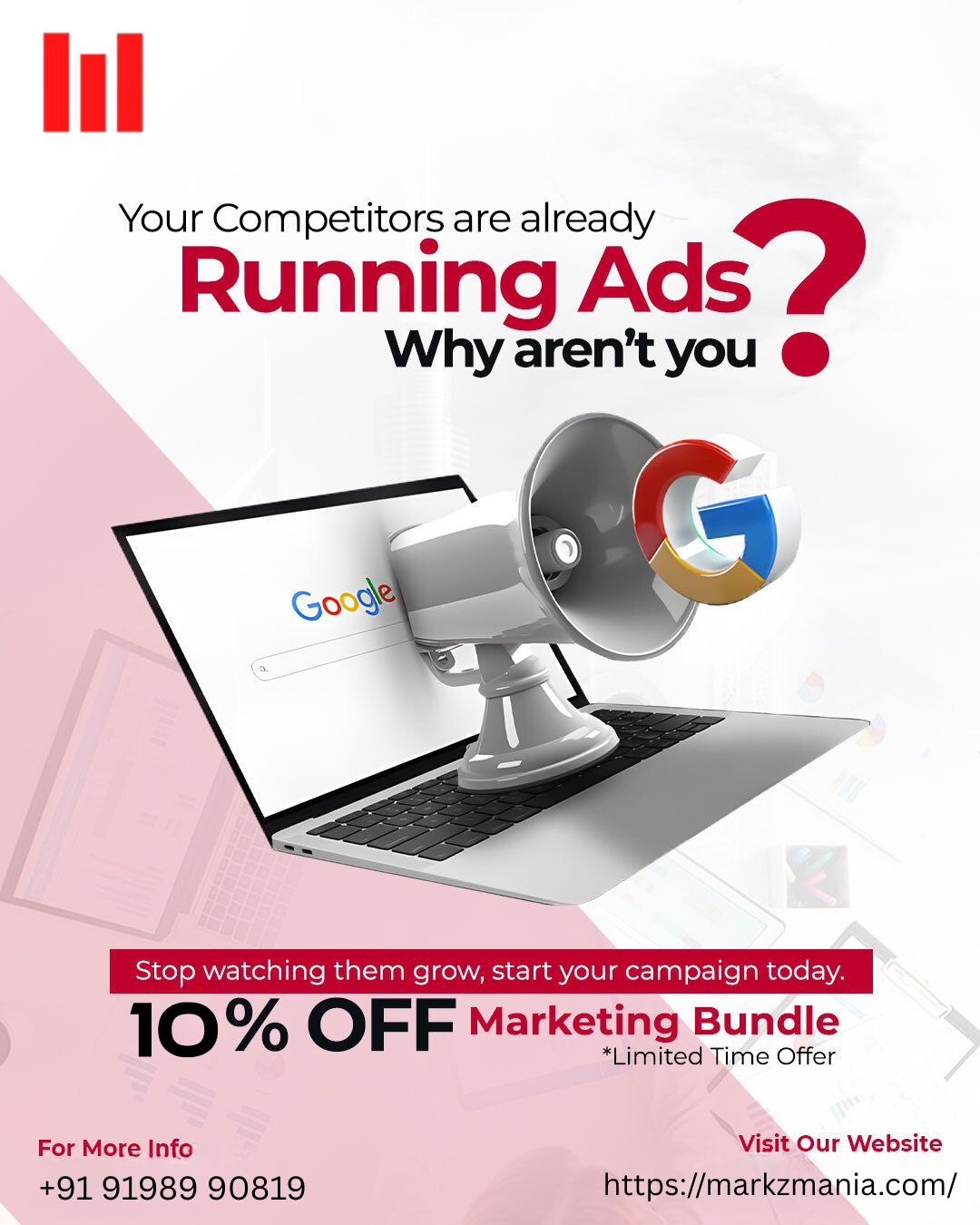This bold visual instantly creates urgency and positions Markzmania as the growth partn…